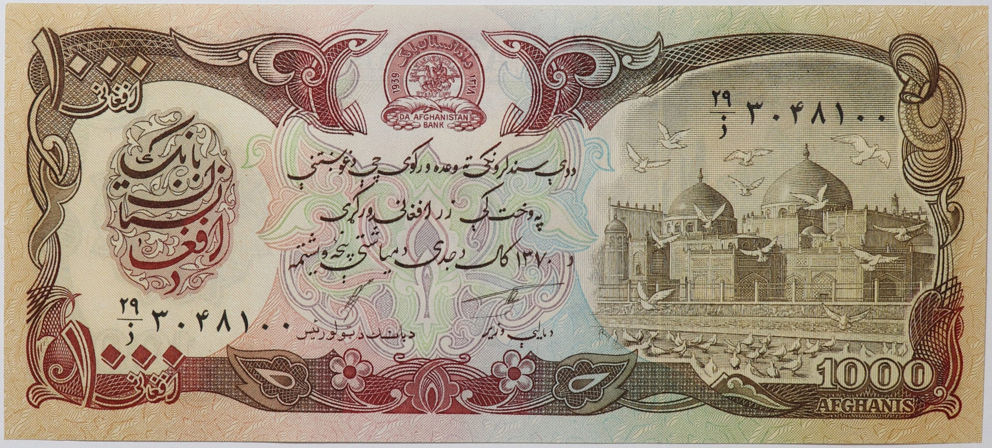 1000 Afghanis - Afganistan - 1991 rok